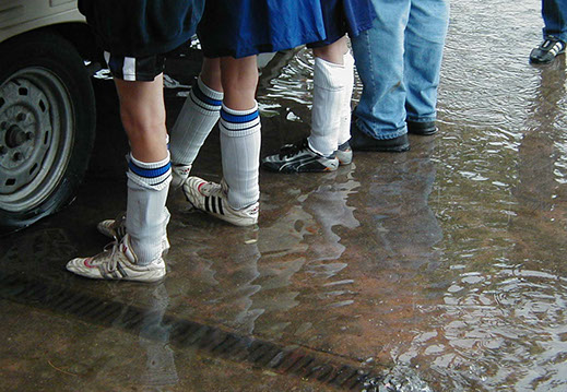 Ausgerechnet das erste E-Jugend-Turnier zugunsten krebskranker Kinder stand zunächst nicht unter einem guten Stern; der Wettergott war den Beteiligten nicht wohl gesonnen.