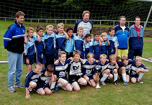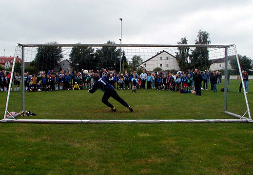 Für das zweite E-Jugendturnier konnte als Stargast der ehemalige Bundesligatorwart von Mönchengladbach und Arminia Bielefeld, Wolfgang Kneib, gewonnen werden. Da geriet das eigentliche Geschehen fast zur Nebensache. Der Ex-Keeper stellte sich erst Interviews und schließlich zum Elfmeterschießen wie abgesprochen "in den Kasten". Die Chance, für einen Euro pro drei Schuß gegen einen renomierten ehemaligen Profi-Torhüter anzutreten, wollte sich kaum jemand entgehen lassen. Der Andrang war riesig und das eigentlich als Pausenfüller angesetzte Highlight mußte schließlich zwangsweise beendet werden; die Kinder und Jugendlichen hätten sonst wohl noch bis tief in die Nacht Elfmeter getreten. Das eigentliche Turnier entschieden diesmal die Leopoldshöher für sich. Sie siegten mit 4:3 im Neunmeterschießen gegen den Gastgeber SC Bad Salzuflen. Finanziell war das Ergebnis des Vorjahres natürlich nicht zu toppen. Für den guten Zweck kamen diesmal aber immerhin 1.300 Euro zusammen, die im April des Folgejahres an Dr. Hans Broede der Kinderklinik Detmold übergeben wurden. Verwendet werden soll der Betrag für eine professionelle Kaffeemaschine, um den Angehörigen auf der Krebsstation den Aufenthalt angenehmer zu gestalten. Übliche Budgets können dafür nicht herangezogen werden!